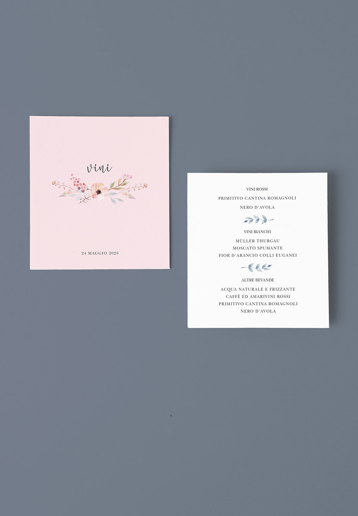 I menù sono utili per informare i tuoi invitati sul loro posto a sedere e sulle pietanze che verranno servite durante il banchetto di nozze, oltre a essere un perfetto elemento di decorazione della tua mise en place.