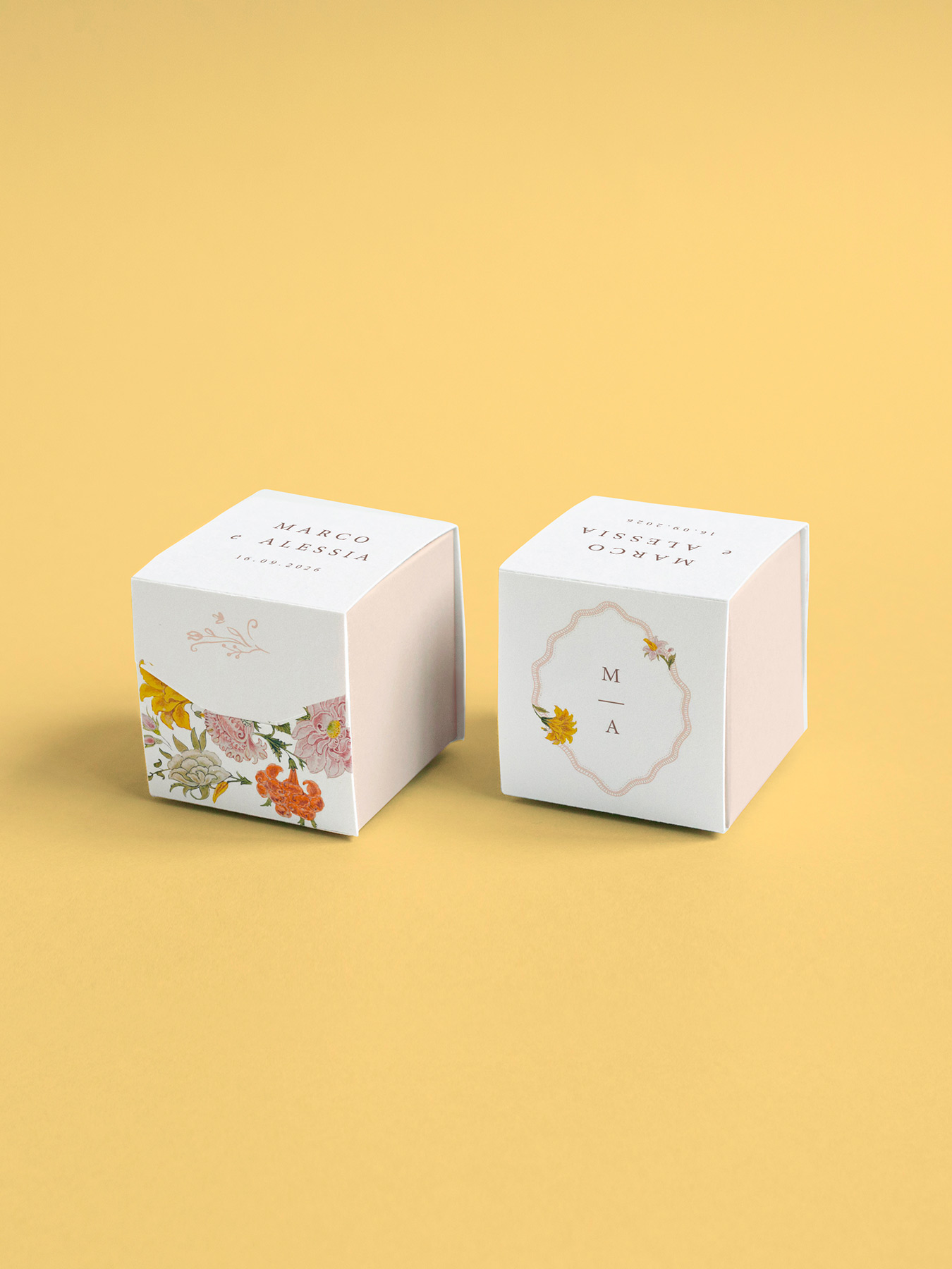 Uno dei nostri grandi classici, una scatolina perfetta. Semplice,  economica, disponibile in tantissime varianti di grafica da abbinare ai laterali colorati per renderla perfetta per la vostra confettata. Si monta in pochi secondi e può contenere fino a 7 confetti di misura normale. (Per i più impavidi No, i confetti non sono inclusi!)