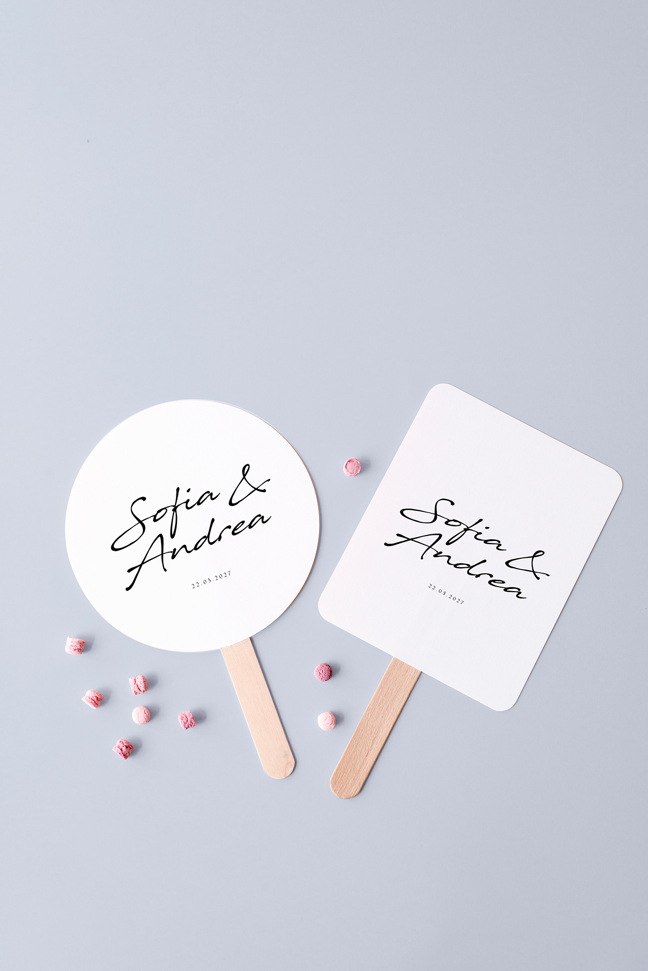 Sul nostro ecommerce troverai un’ampia scelta di ventagli, con svariati temi, fantasie e stili che possano soddisfare i gusti di tutti i futuri sposi. Ogni modello può essere personalizzato con il proprio testo preferito, da comunicare a seguito dell’ordine. È possibile optare per il modello classico o di seta e, per confermare il prodotto, ti verrà inviata una bozza, così da assicurarci che il lavoro sia proprio come lo desideravi.