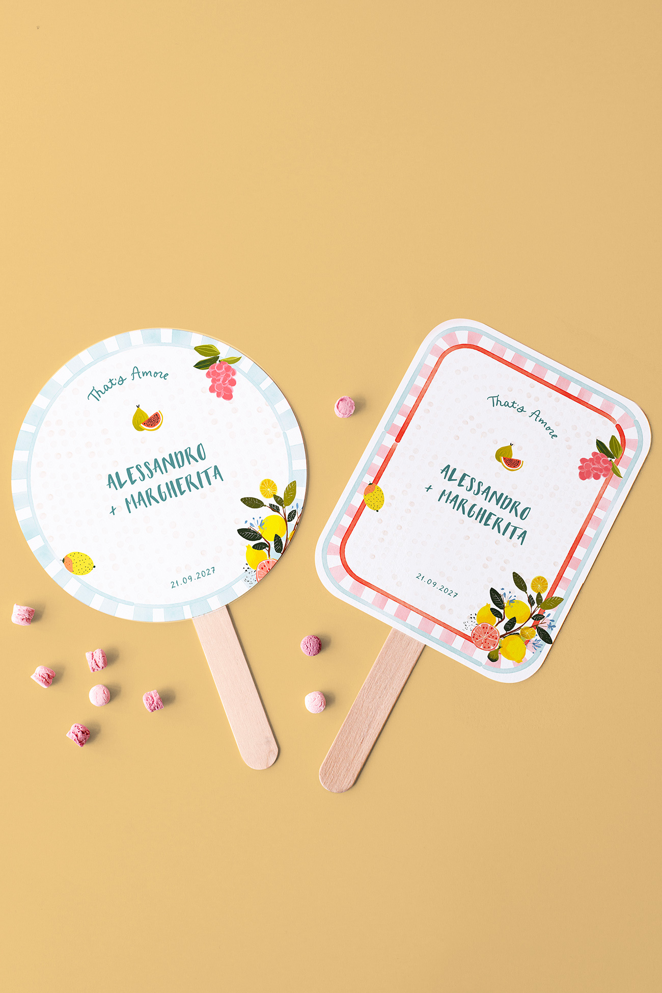 Un’alternativa per permettere ai tuoi ospiti di godersi la giornata combattendo il caldo è quella di offrire loro un ventaglio. Oltre che ad essere utile, questo accessorio è anche molto bello da vedere e richiamerà il tema del matrimonio diventando, così, un pratico ricordo da conservare.