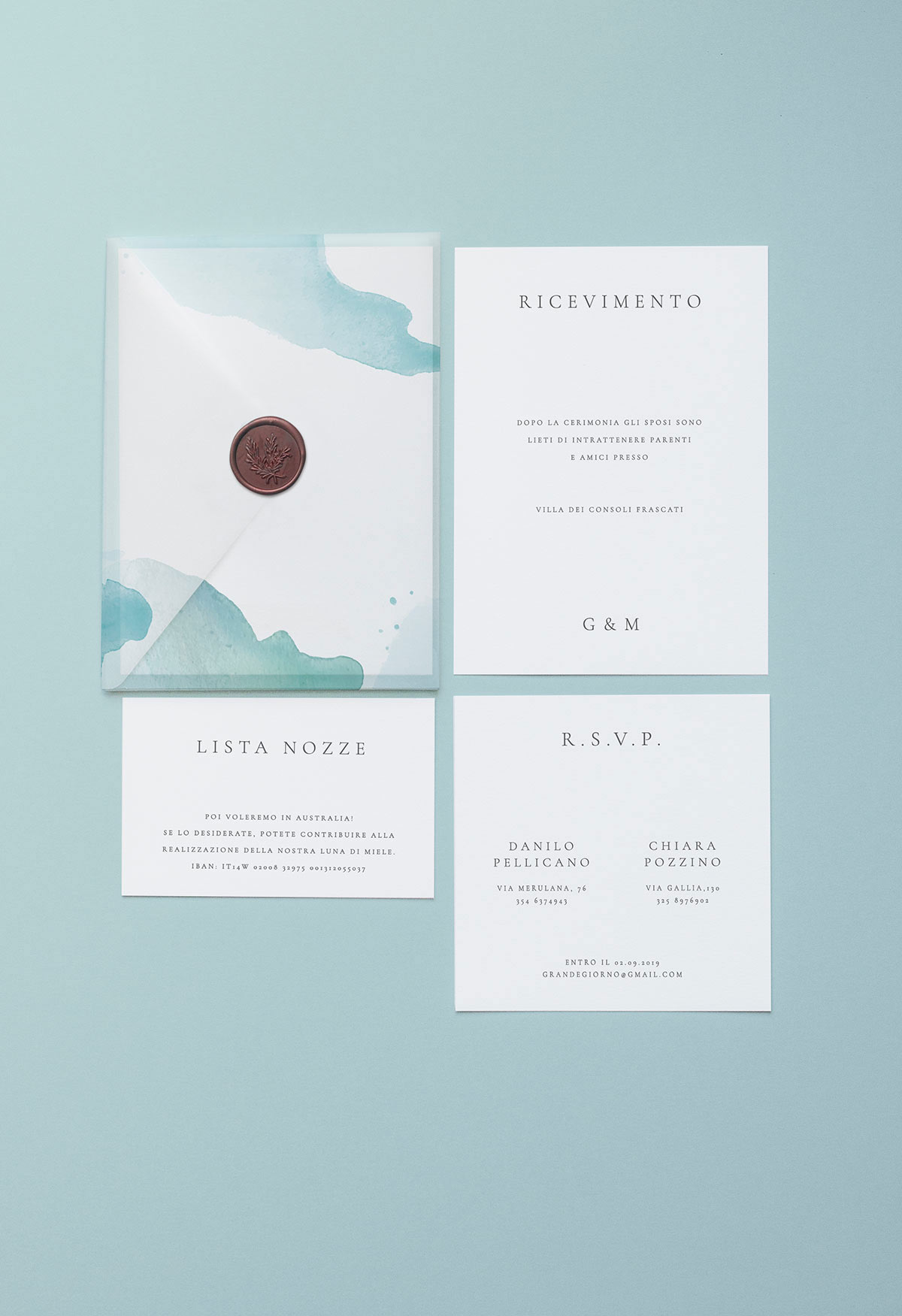 Carta dei biglietti interni: Fedrigoni FSC Ecologica 250 grammi, leggermente martellata.ย