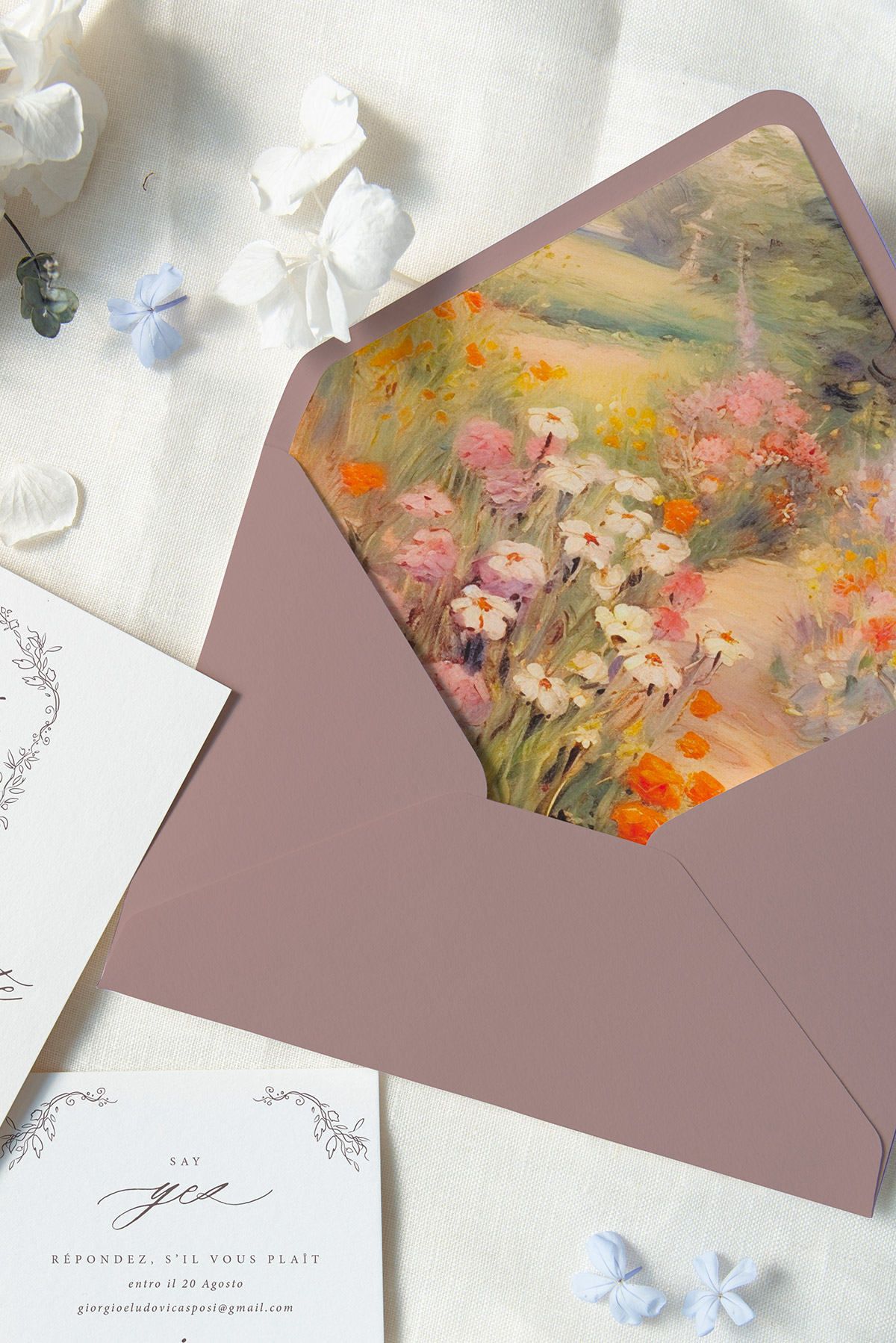 • La linea Époque è perfetta per le coppie che desiderano un matrimonio raffinato e senza tempo. è  una rappresentazione del gusto classico in ogni suo dettaglio ed è stata pensata per celebrare la tradizione con un tocco di sofisticata esclusività. Il cuore di Époque risiede nella busta decorata da un liner interno. è disponibile sia in cartoncino colorato semplice che carta cotone artigianale ed è possibile scegliere l’illustrazione che evoca i paesaggi e atmosfere ricercate. Oltre alle illustrazioni proposte è infatti possibile richiedere un’illustrazione personalizzata realizzata ad hoc o fornirne una propria.