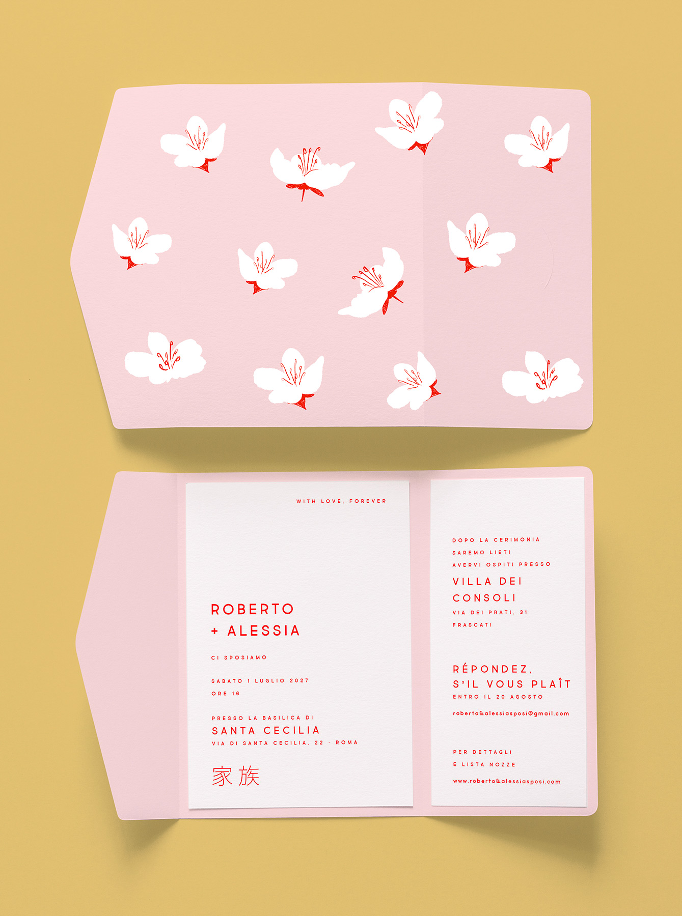 Carta dei biglietti interni: Fedrigoni FSC Ecologica 250 grammi, leggermente martellata.