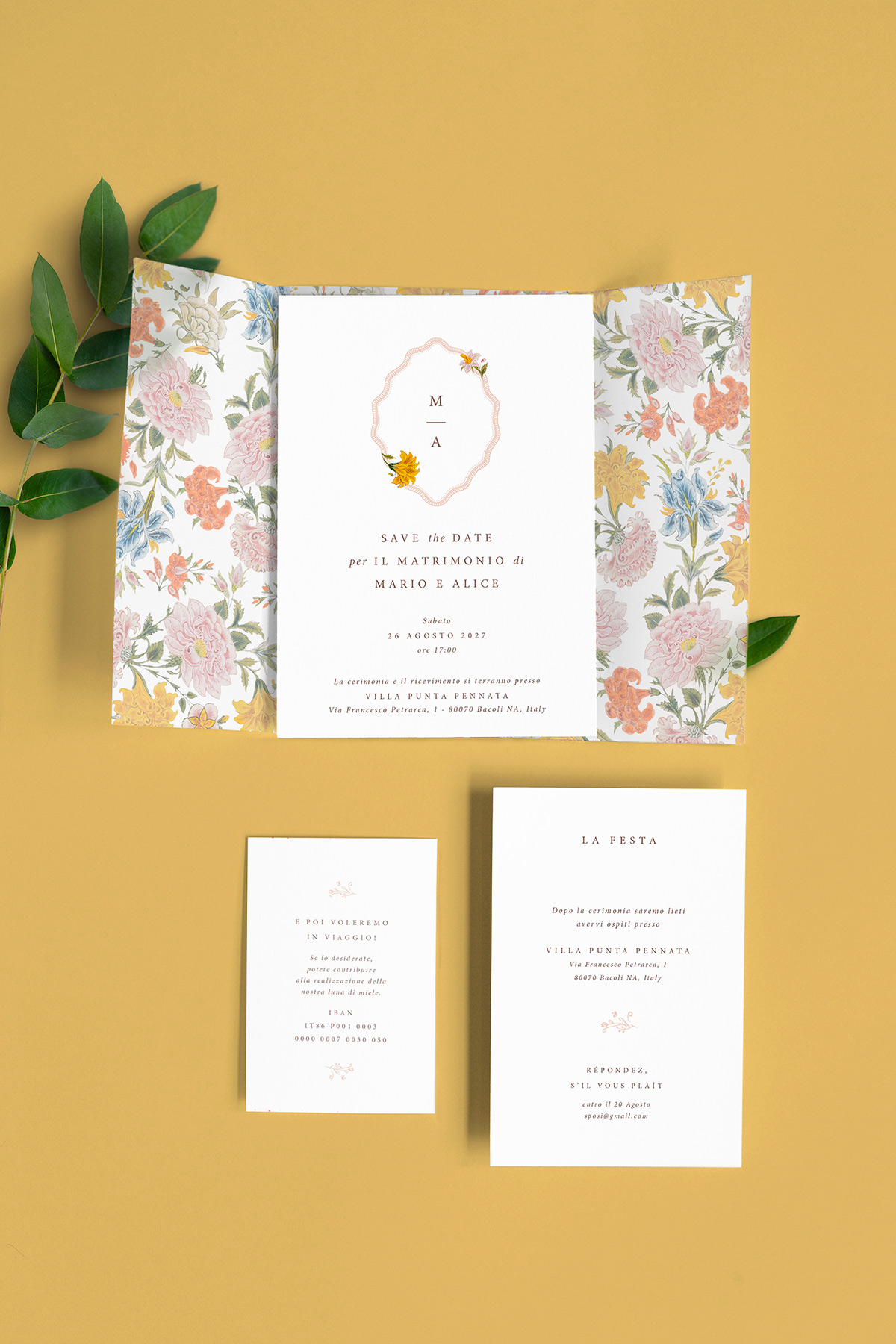 Carta dei biglietti interni: Fedrigoni FSC Ecologica 250 grammi, leggermente martellata.