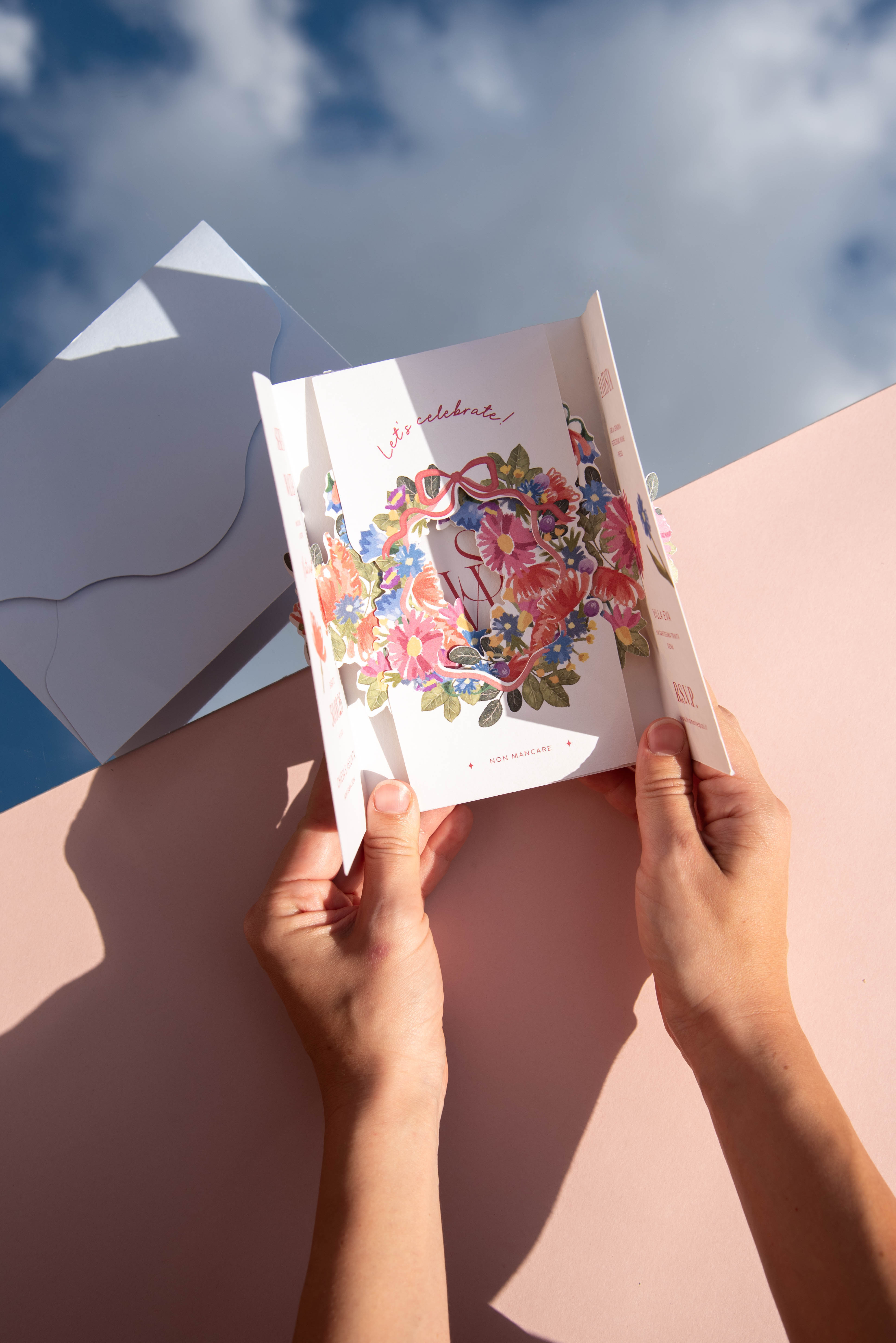 L’invito di nozze Pop-Up delia non รจ solo una partecipazione ma รจ un piccolo dono per i tuoi invitati.