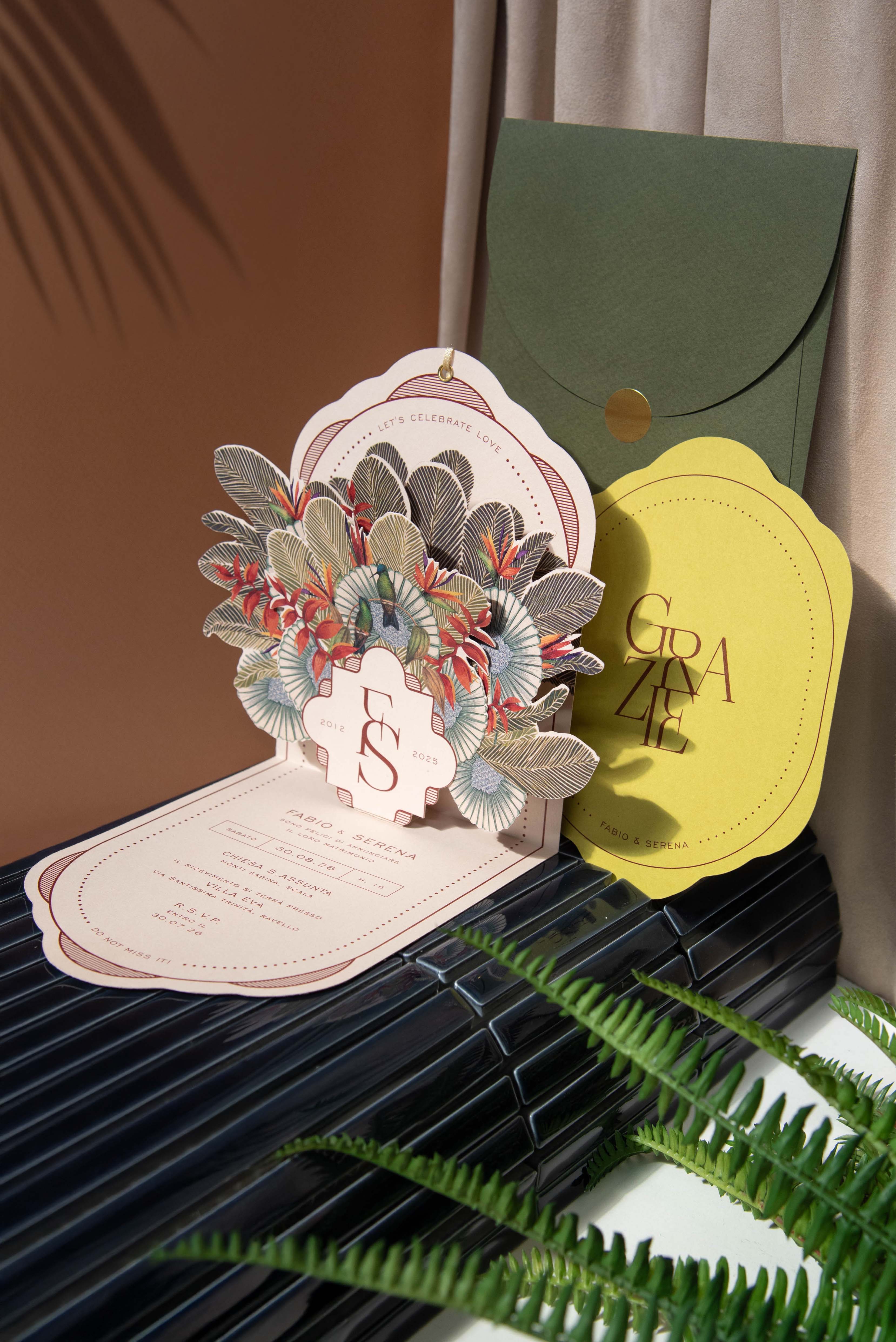 L’invito di nozze Pop-Up Primavera non รจ solo una partecipazione ma รจ un piccolo dono per i tuoi invitati.