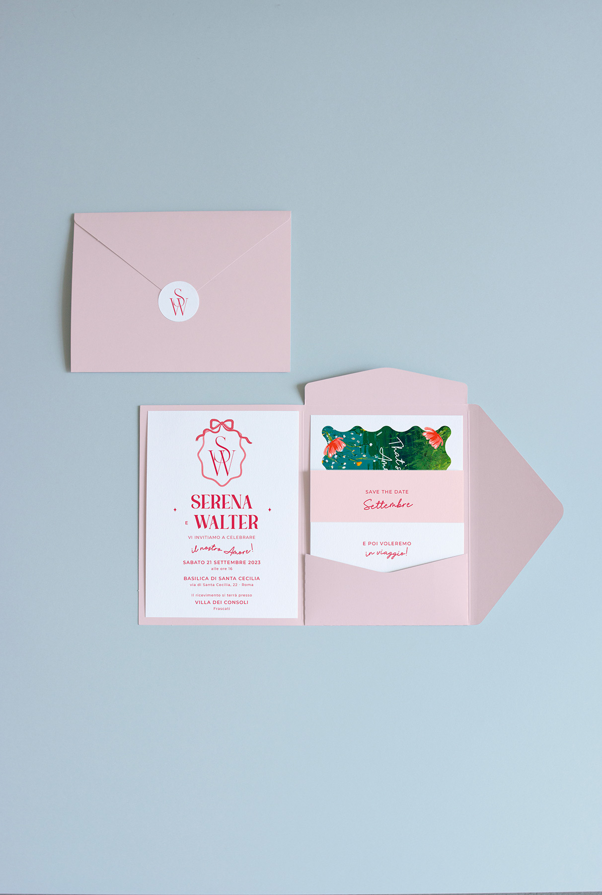 Carta dei biglietti interni: Fedrigoni FSC Ecologica 250 grammi, leggermente martellata.