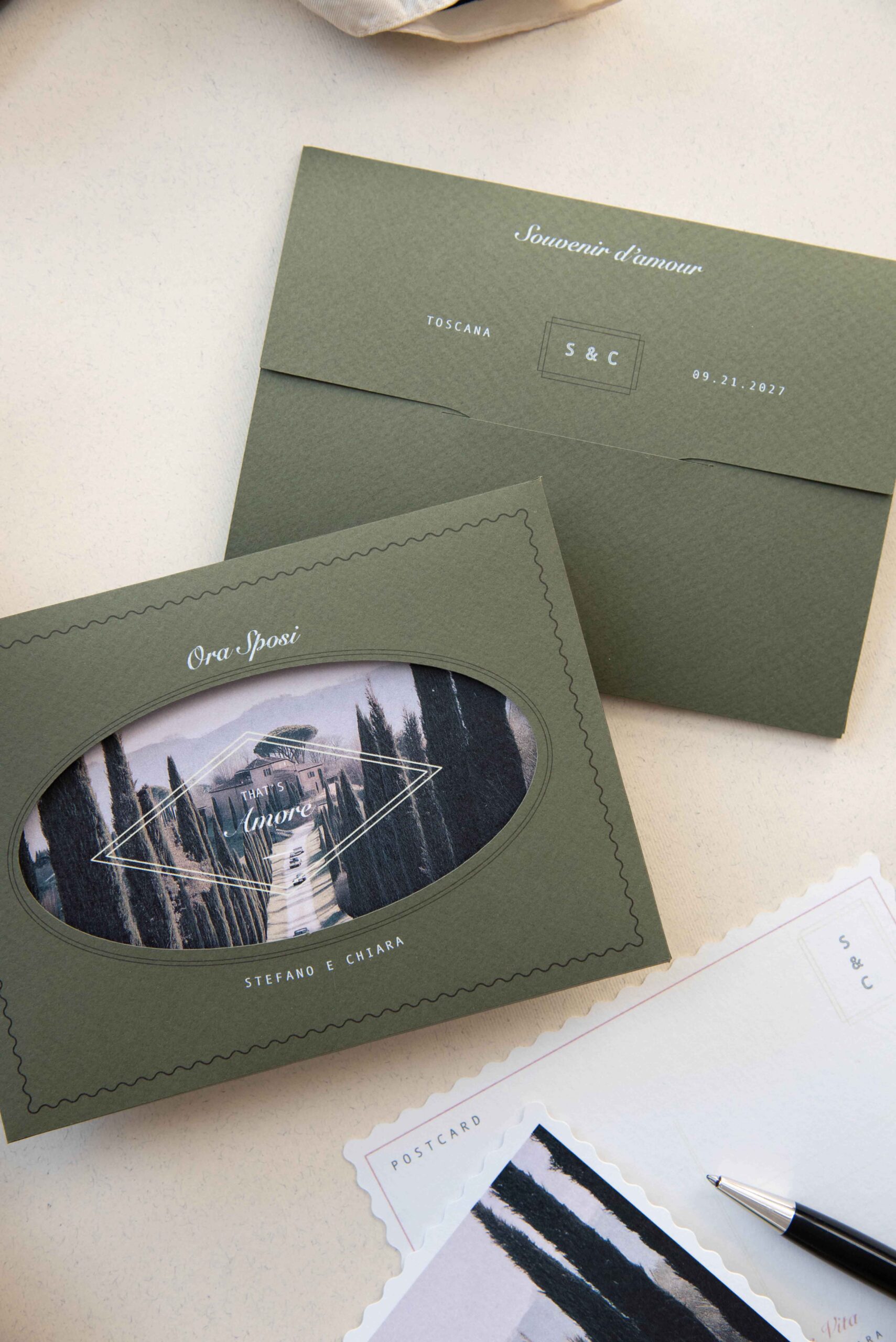 L’invito di nozze Wish you were here è un futuro souvenir del vostro matrimonio.